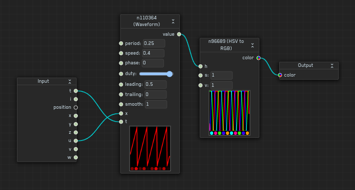 I wanted to define effects much like shaders as found in modern 3D software. To be able to build effects out of a set of primitives and easily adjust parameters.